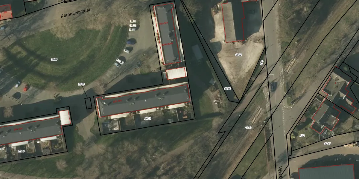 Keramiekstraat 326 is gelegen op kadastraal perceel TGL00D2603. Deze kadastrale aanduiding is uniek en wordt gebruikt door het Kadaster om eigendomsrechten en andere zakelijke rechten vast te leggen. Het perceel maakt onderdeel uit van de kadastrale gemeente Tegelen.