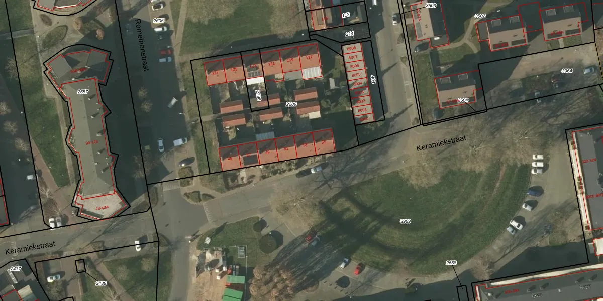 Keramiekstraat 53 is gelegen op kadastraal perceel TGL00D2289. Deze kadastrale aanduiding is uniek en wordt gebruikt door het Kadaster om eigendomsrechten en andere zakelijke rechten vast te leggen. Het perceel maakt onderdeel uit van de kadastrale gemeente Tegelen.