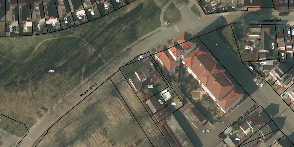 Kloosterstraat 50 is gelegen op kadastraal perceel TGL00A5448. Deze kadastrale aanduiding is uniek en wordt gebruikt door het Kadaster om eigendomsrechten en andere zakelijke rechten vast te leggen. Het perceel maakt onderdeel uit van de kadastrale gemeente Tegelen.