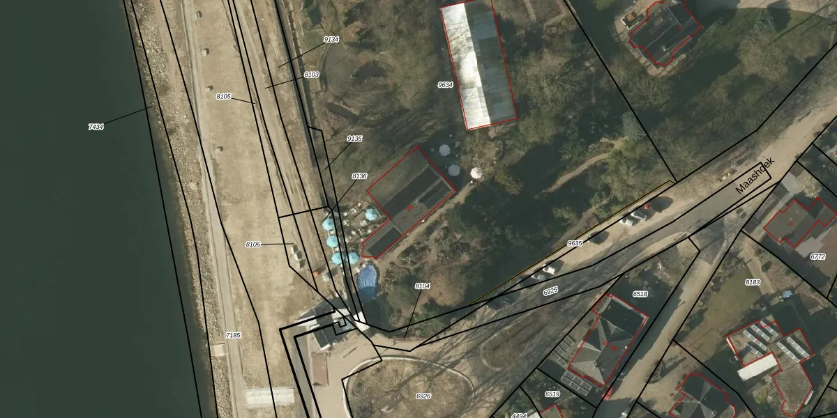 Het perceel waarop Maashoek 2-B staat heeft een oppervlakte van 6664 m². Dit is een zeer groot perceel. De perceeloppervlakte wordt geregistreerd door het Kadaster. Gedetailleerde informatie over de maten van dit perceel kunt u vinden in het rapport Kadastrale kaart met maatvoering van Maashoek 2-B.
