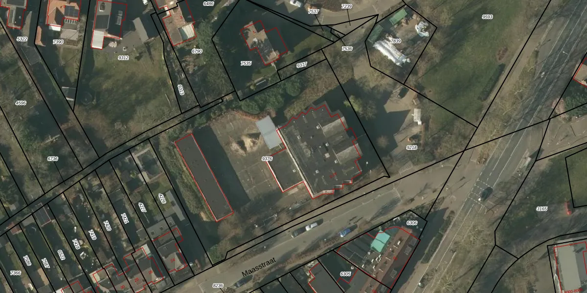 Maasstraat 2-15 is gelegen op kadastraal perceel TGL00A9376. Deze kadastrale aanduiding is uniek en wordt gebruikt door het Kadaster om eigendomsrechten en andere zakelijke rechten vast te leggen. Het perceel maakt onderdeel uit van de kadastrale gemeente Tegelen.
