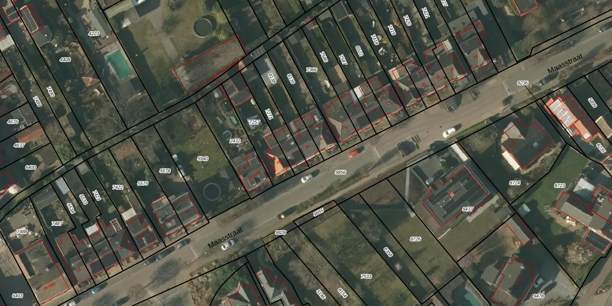 Maasstraat 44 is gelegen op kadastraal perceel TGL00A8138. Deze kadastrale aanduiding is uniek en wordt gebruikt door het Kadaster om eigendomsrechten en andere zakelijke rechten vast te leggen. Het perceel maakt onderdeel uit van de kadastrale gemeente Tegelen.
