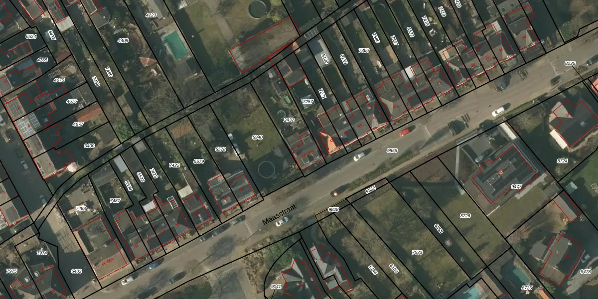 Maasstraat 50-A is gelegen op kadastraal perceel TGL00A2432. Deze kadastrale aanduiding is uniek en wordt gebruikt door het Kadaster om eigendomsrechten en andere zakelijke rechten vast te leggen. Het perceel maakt onderdeel uit van de kadastrale gemeente Tegelen.