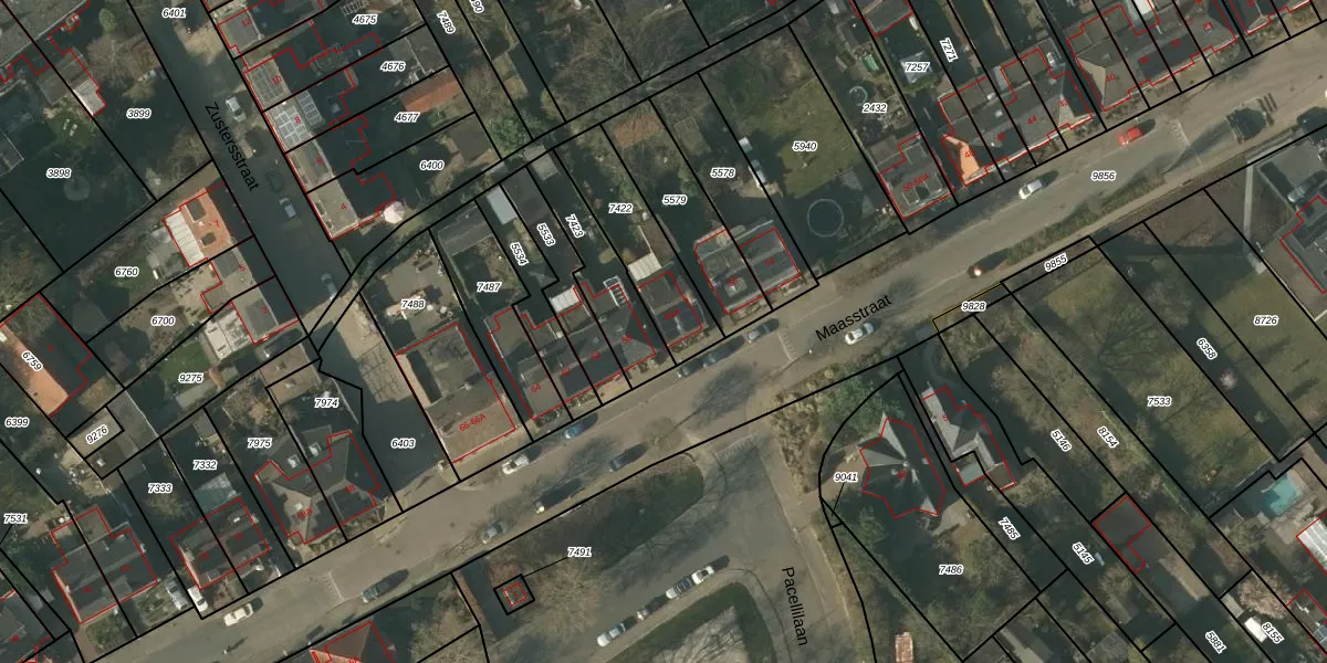 Maasstraat 56-A is gelegen op kadastraal perceel TGL00A7422. Deze kadastrale aanduiding is uniek en wordt gebruikt door het Kadaster om eigendomsrechten en andere zakelijke rechten vast te leggen. Het perceel maakt onderdeel uit van de kadastrale gemeente Tegelen.