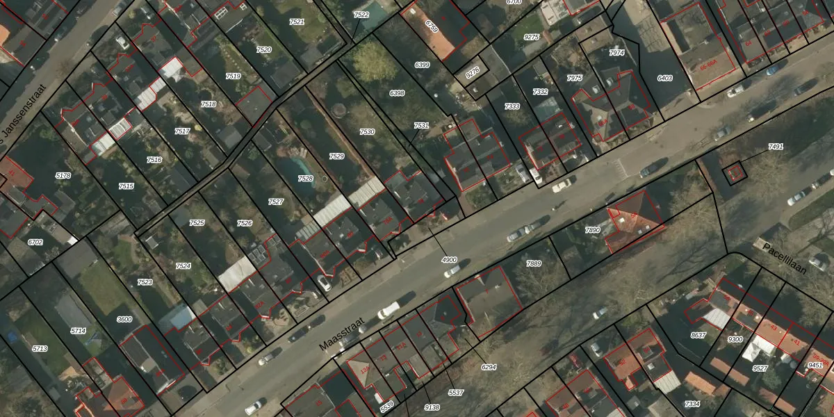 Het perceel waarop Maasstraat 78 staat heeft een oppervlakte van 400 m². Dit is een groot perceel. De perceeloppervlakte wordt geregistreerd door het Kadaster. Gedetailleerde informatie over de maten van dit perceel kunt u vinden in het rapport Kadastrale kaart met maatvoering van Maasstraat 78.