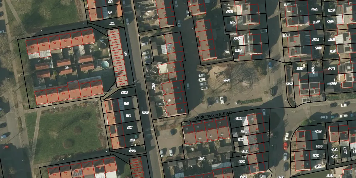 Het perceel waarop Modelmakersstraat 40 staat heeft een oppervlakte van 940 m². Dit is een groot perceel. De perceeloppervlakte wordt geregistreerd door het Kadaster. Gedetailleerde informatie over de maten van dit perceel kunt u vinden in het rapport Kadastrale kaart met maatvoering van Modelmakersstraat 40.