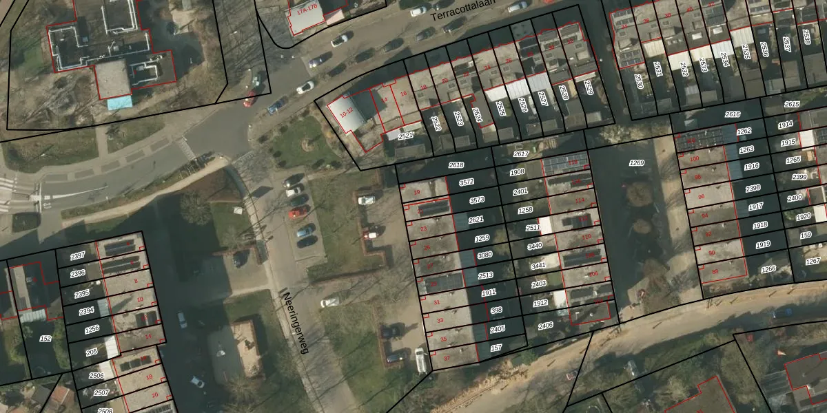 Het perceel waarop Neeringerweg 21 staat heeft een oppervlakte van 107 m². Dit is een middelgroot perceel. De perceeloppervlakte wordt geregistreerd door het Kadaster. Gedetailleerde informatie over de maten van dit perceel kunt u vinden in het rapport Kadastrale kaart met maatvoering van Neeringerweg 21.
