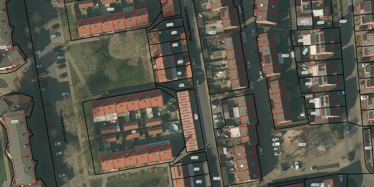 Nijverheidsstraat 8030 is gelegen op kadastraal perceel TGL00D402. Deze kadastrale aanduiding is uniek en wordt gebruikt door het Kadaster om eigendomsrechten en andere zakelijke rechten vast te leggen. Het perceel maakt onderdeel uit van de kadastrale gemeente Tegelen.
