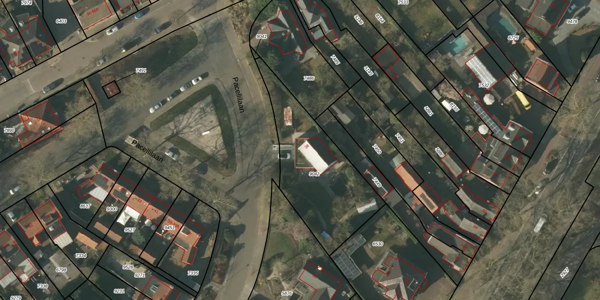Het perceel waarop Pacellilaan 38 staat heeft een oppervlakte van 970 m². Dit is een groot perceel. De perceeloppervlakte wordt geregistreerd door het Kadaster. Gedetailleerde informatie over de maten van dit perceel kunt u vinden in het rapport Kadastrale kaart met maatvoering van Pacellilaan 38.
