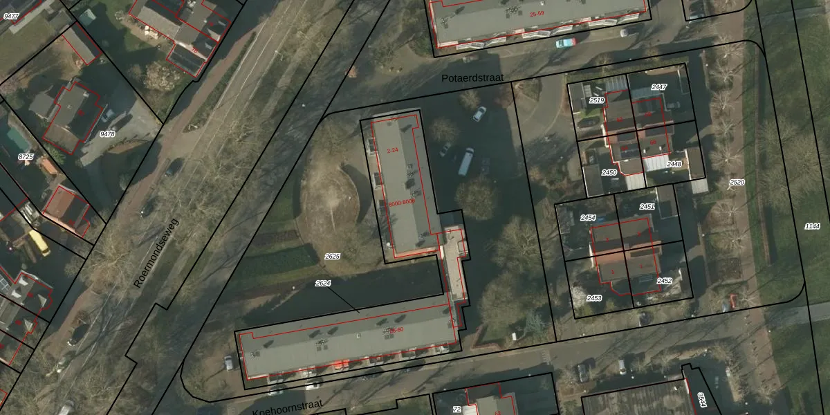 Potaerdstraat 4 is gelegen op kadastraal perceel TGL00D2624. Deze kadastrale aanduiding is uniek en wordt gebruikt door het Kadaster om eigendomsrechten en andere zakelijke rechten vast te leggen. Het perceel maakt onderdeel uit van de kadastrale gemeente Tegelen.