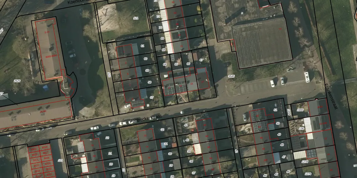 Pottbeckerstraat 13 is gelegen op kadastraal perceel TGL00D65. Deze kadastrale aanduiding is uniek en wordt gebruikt door het Kadaster om eigendomsrechten en andere zakelijke rechten vast te leggen. Het perceel maakt onderdeel uit van de kadastrale gemeente Tegelen.