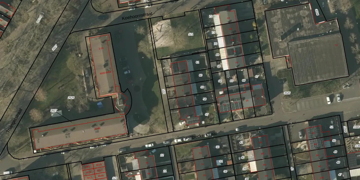 Pottbeckerstraat 5 is gelegen op kadastraal perceel TGL00D59. Deze kadastrale aanduiding is uniek en wordt gebruikt door het Kadaster om eigendomsrechten en andere zakelijke rechten vast te leggen. Het perceel maakt onderdeel uit van de kadastrale gemeente Tegelen.