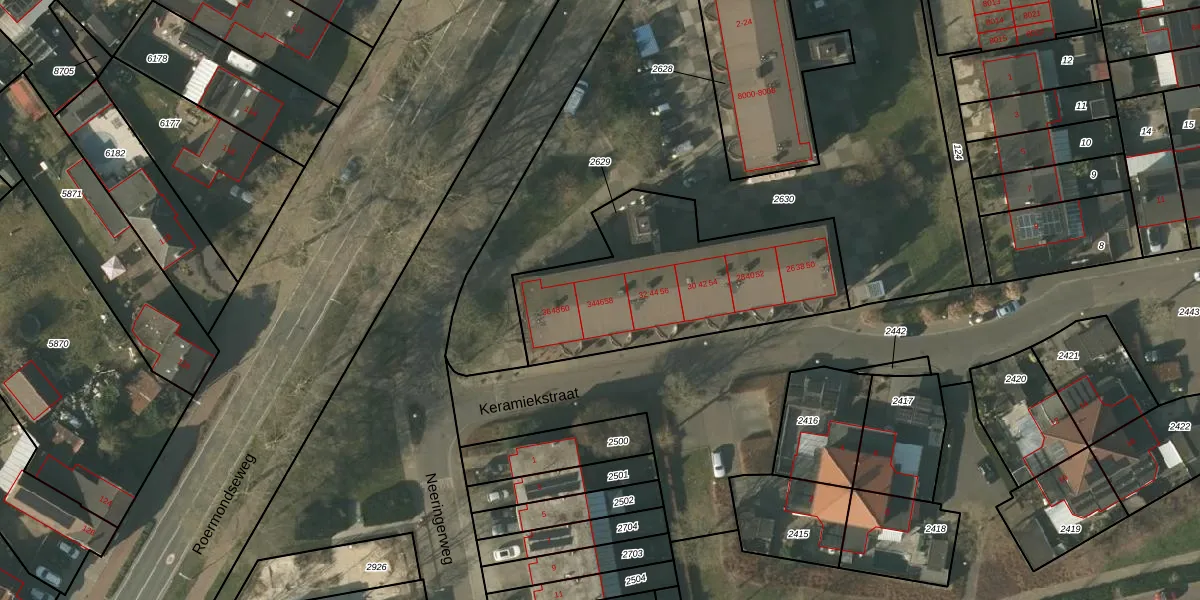 Het perceel waarop het adres ligt is TGL00-D-2629. De afkorting 'TGL00' staat voor kadastrale gemeente Tegelen. De gemiddelde perceelgrootte in Tegelen is 1121,35 m². Dit perceel is kleiner: de perceeloppervlakte bedraagt 984 m². Het grootste perceel in de kadastrale gemeente is 24,0 ha. Het kleinste perceel heeft een oppervlakte van 0 m². Op het perceel liggen in totaal 18 adressen. In de Basisregistratie Kadaster (BRK) werden de grenzen van het perceel geregistreerd op 03-08-2006.