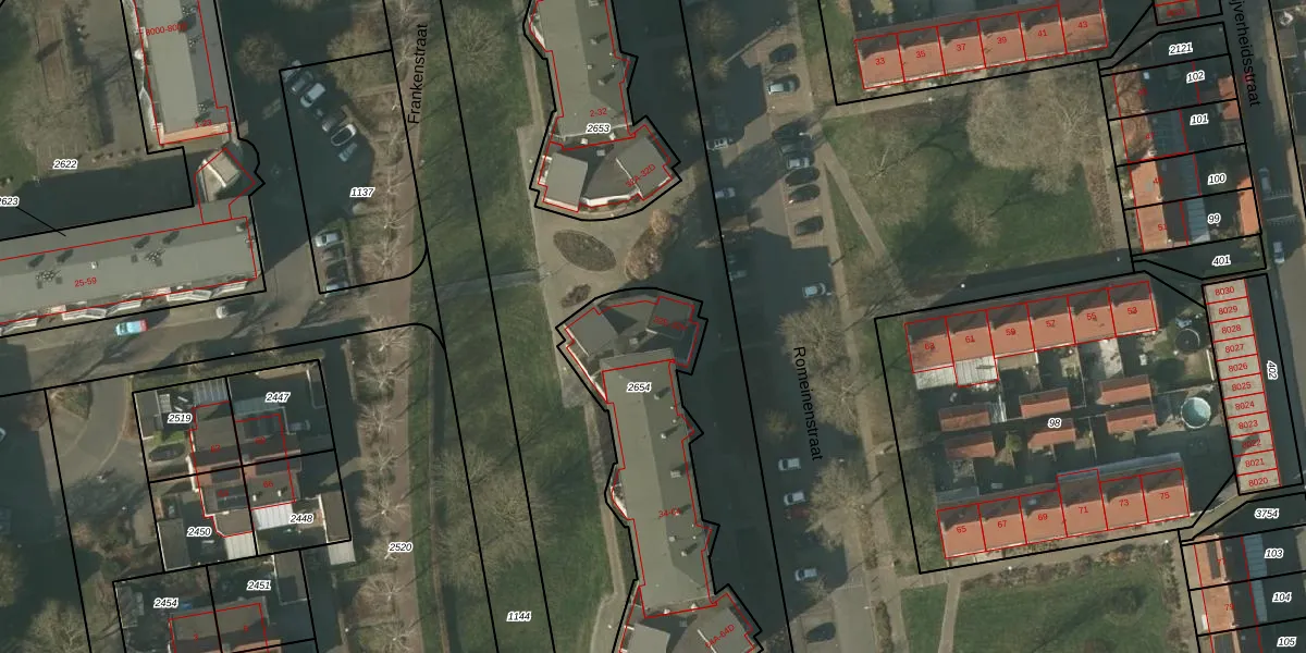 Romeinenstraat 32-G is gelegen op kadastraal perceel TGL00D2654. Deze kadastrale aanduiding is uniek en wordt gebruikt door het Kadaster om eigendomsrechten en andere zakelijke rechten vast te leggen. Het perceel maakt onderdeel uit van de kadastrale gemeente Tegelen.