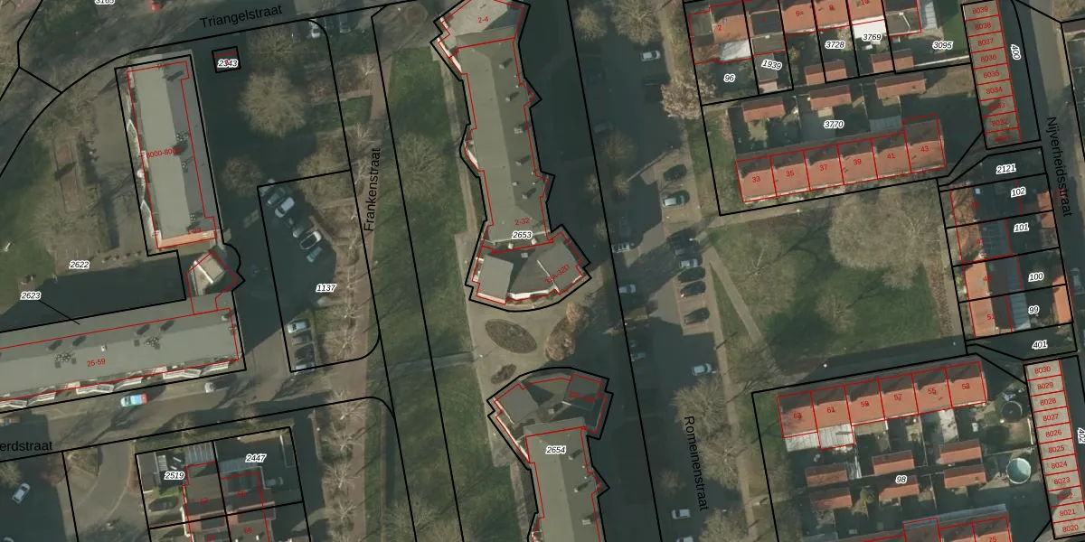 Het perceel waarop Romeinenstraat 32-C staat heeft een oppervlakte van 855 m². Dit is een groot perceel. De perceeloppervlakte wordt geregistreerd door het Kadaster. Gedetailleerde informatie over de maten van dit perceel kunt u vinden in het rapport Kadastrale kaart met maatvoering van Romeinenstraat 32-C.