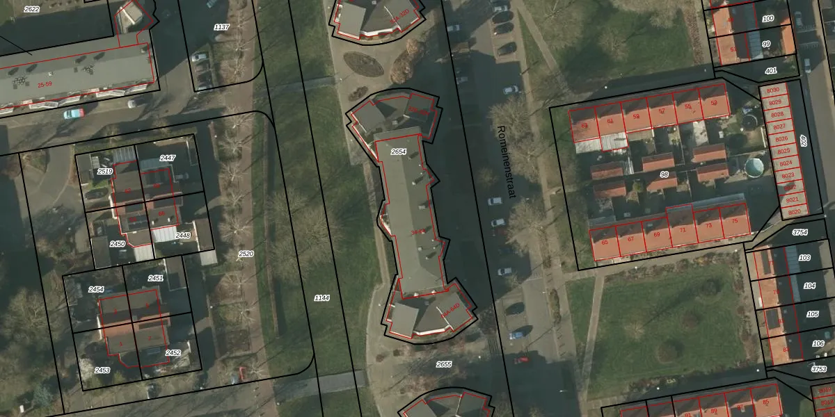 Romeinenstraat 40 is gelegen op kadastraal perceel TGL00D2654. Deze kadastrale aanduiding is uniek en wordt gebruikt door het Kadaster om eigendomsrechten en andere zakelijke rechten vast te leggen. Het perceel maakt onderdeel uit van de kadastrale gemeente Tegelen.
