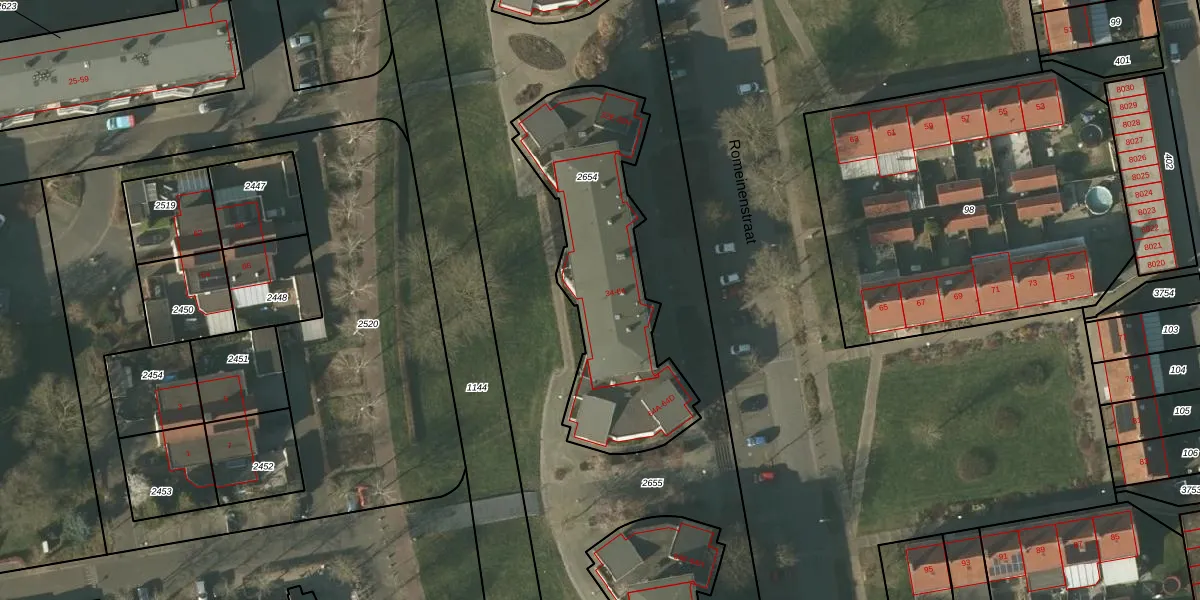 Het perceel waarop Romeinenstraat 58 staat heeft een oppervlakte van 950 m². Dit is een groot perceel. De perceeloppervlakte wordt geregistreerd door het Kadaster. Gedetailleerde informatie over de maten van dit perceel kunt u vinden in het rapport Kadastrale kaart met maatvoering van Romeinenstraat 58.
