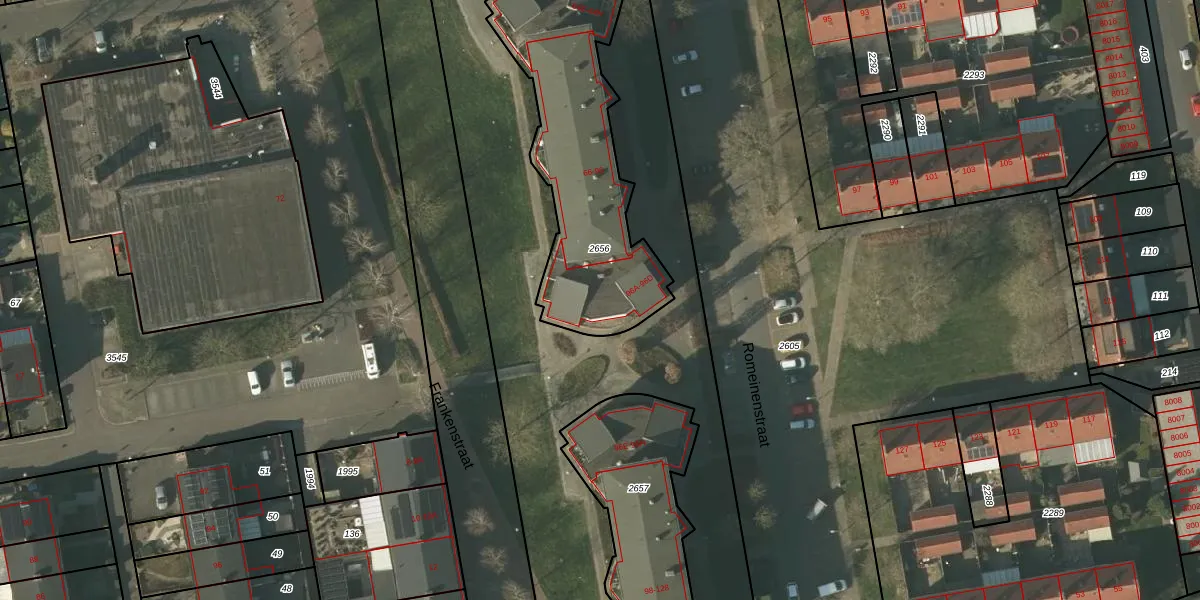 Het perceel waarop Romeinenstraat 96-B staat heeft een oppervlakte van 955 m². Dit is een groot perceel. De perceeloppervlakte wordt geregistreerd door het Kadaster. Gedetailleerde informatie over de maten van dit perceel kunt u vinden in het rapport Kadastrale kaart met maatvoering van Romeinenstraat 96-B.
