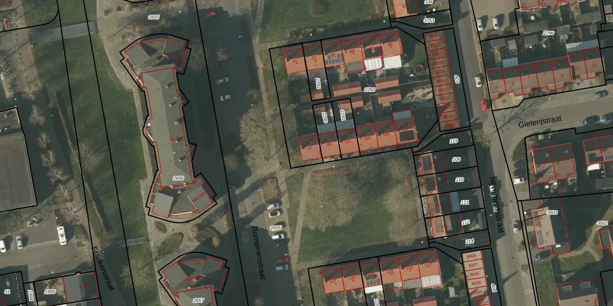 Romeinenstraat 97 is gelegen op kadastraal perceel TGL00D2293. Deze kadastrale aanduiding is uniek en wordt gebruikt door het Kadaster om eigendomsrechten en andere zakelijke rechten vast te leggen. Het perceel maakt onderdeel uit van de kadastrale gemeente Tegelen.