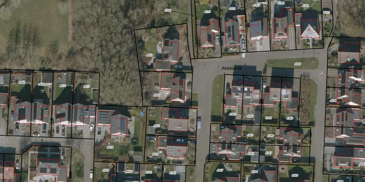 Het perceel waarop Akasiahôf 26 staat heeft een oppervlakte van 530 m². Dit is een groot perceel. De perceeloppervlakte wordt geregistreerd door het Kadaster. Gedetailleerde informatie over de maten van dit perceel kunt u vinden in het rapport Kadastrale kaart met maatvoering van Akasiahôf 26.