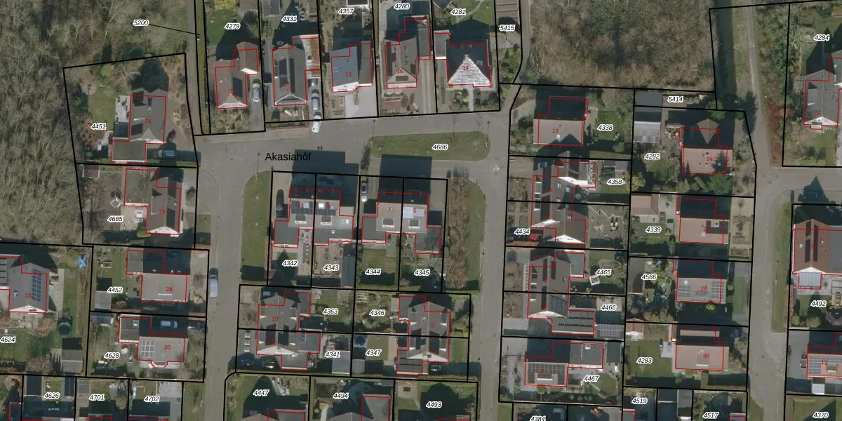 Akasiahôf 5 is gelegen op kadastraal perceel HUM00B4345. Deze kadastrale aanduiding is uniek en wordt gebruikt door het Kadaster om eigendomsrechten en andere zakelijke rechten vast te leggen. Het perceel maakt onderdeel uit van de kadastrale gemeente Hijum.
