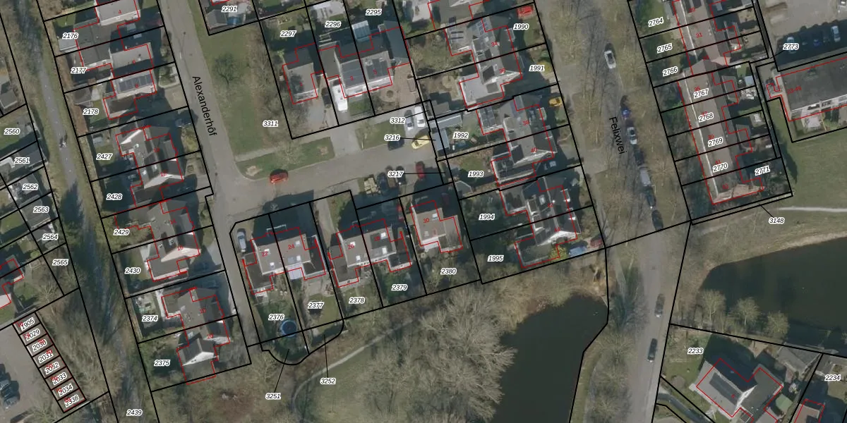 Het perceel waarop Alexanderhôf 30 staat heeft een oppervlakte van 318 m². Dit is een groot perceel. De perceeloppervlakte wordt geregistreerd door het Kadaster. Gedetailleerde informatie over de maten van dit perceel kunt u vinden in het rapport Kadastrale kaart met maatvoering van Alexanderhôf 30.