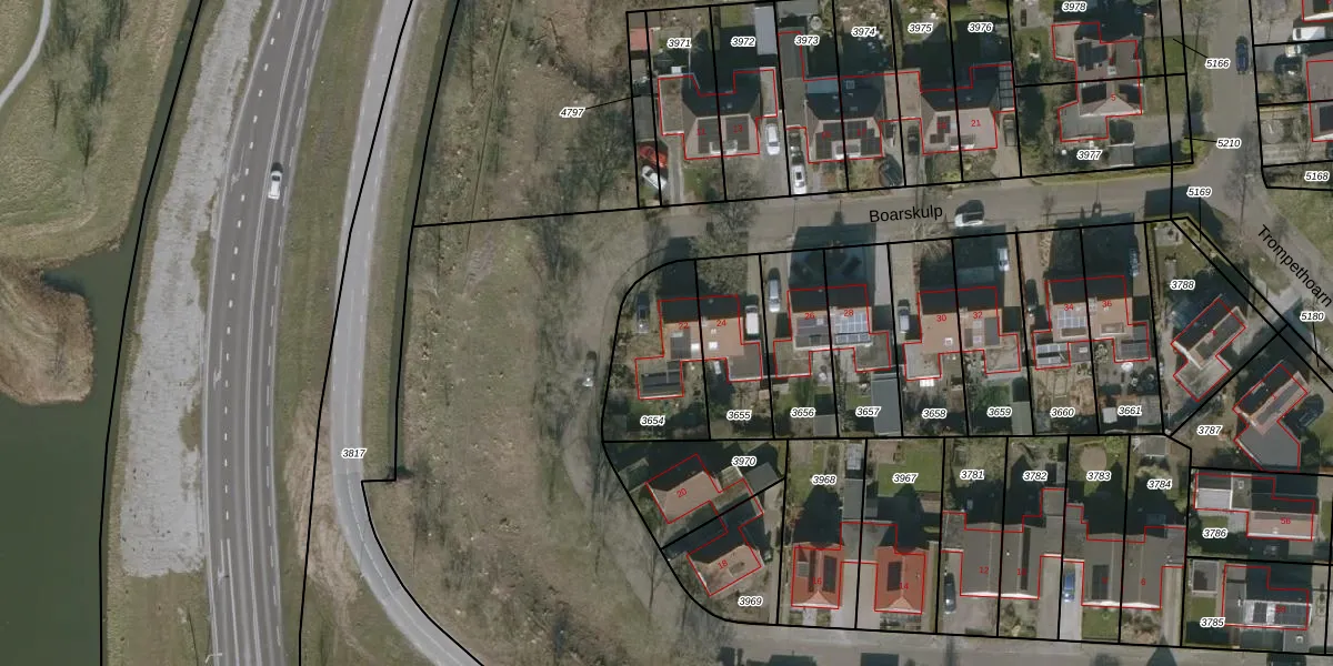 Het perceel waarop Boarskulp 22 staat heeft een oppervlakte van 346 m². Dit is een groot perceel. De perceeloppervlakte wordt geregistreerd door het Kadaster. Gedetailleerde informatie over de maten van dit perceel kunt u vinden in het rapport Kadastrale kaart met maatvoering van Boarskulp 22.