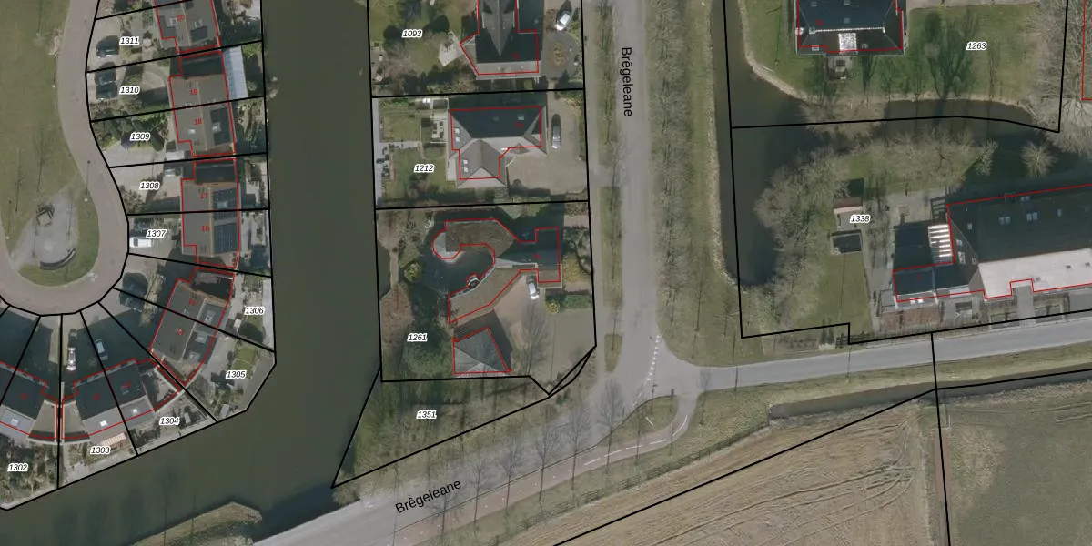 Het perceel waarop Brêgeleane 76 staat heeft een oppervlakte van 1245 m². Dit is een zeer groot perceel. De perceeloppervlakte wordt geregistreerd door het Kadaster. Gedetailleerde informatie over de maten van dit perceel kunt u vinden in het rapport Kadastrale kaart met maatvoering van Brêgeleane 76.