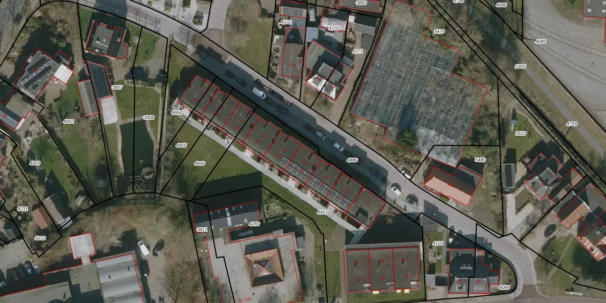 Het perceel waarop Burmaniawei 14 staat heeft een oppervlakte van 2068 m². Dit is een zeer groot perceel. De perceeloppervlakte wordt geregistreerd door het Kadaster. Gedetailleerde informatie over de maten van dit perceel kunt u vinden in het rapport Kadastrale kaart met maatvoering van Burmaniawei 14.