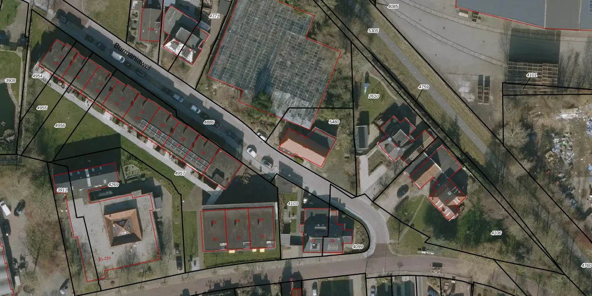 Het perceel waarop Burmaniawei 23 staat heeft een oppervlakte van 593 m². Dit is een groot perceel. De perceeloppervlakte wordt geregistreerd door het Kadaster. Gedetailleerde informatie over de maten van dit perceel kunt u vinden in het rapport Kadastrale kaart met maatvoering van Burmaniawei 23.