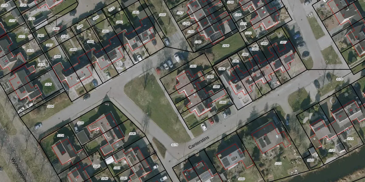 Het perceel waarop Canterstins 19 staat heeft een oppervlakte van 172 m². Dit is een middelgroot perceel. De perceeloppervlakte wordt geregistreerd door het Kadaster. Gedetailleerde informatie over de maten van dit perceel kunt u vinden in het rapport Kadastrale kaart met maatvoering van Canterstins 19.