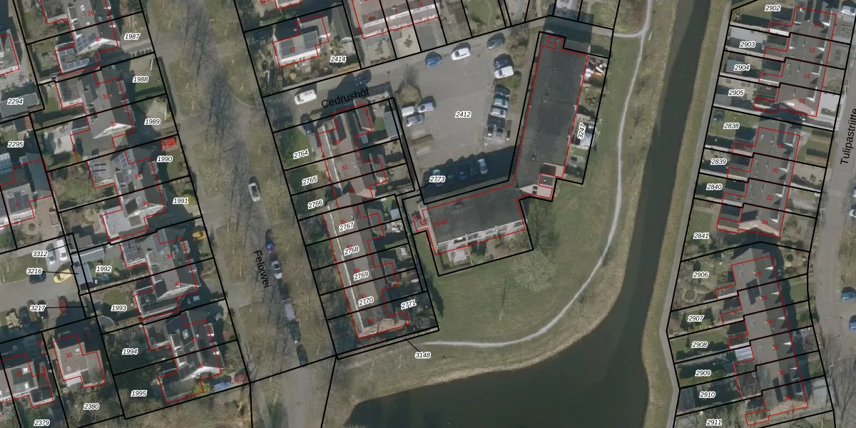 Het perceel waarop Cedrushôf 49 staat heeft een oppervlakte van 1012 m². Dit is een zeer groot perceel. De perceeloppervlakte wordt geregistreerd door het Kadaster. Gedetailleerde informatie over de maten van dit perceel kunt u vinden in het rapport Kadastrale kaart met maatvoering van Cedrushôf 49.