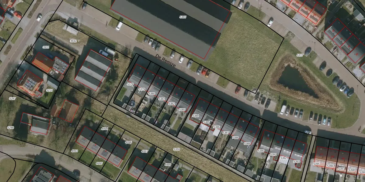 Het perceel waarop De Remize 5 staat heeft een oppervlakte van 180 m². Dit is een middelgroot perceel. De perceeloppervlakte wordt geregistreerd door het Kadaster. Gedetailleerde informatie over de maten van dit perceel kunt u vinden in het rapport Kadastrale kaart met maatvoering van De Remize 5.