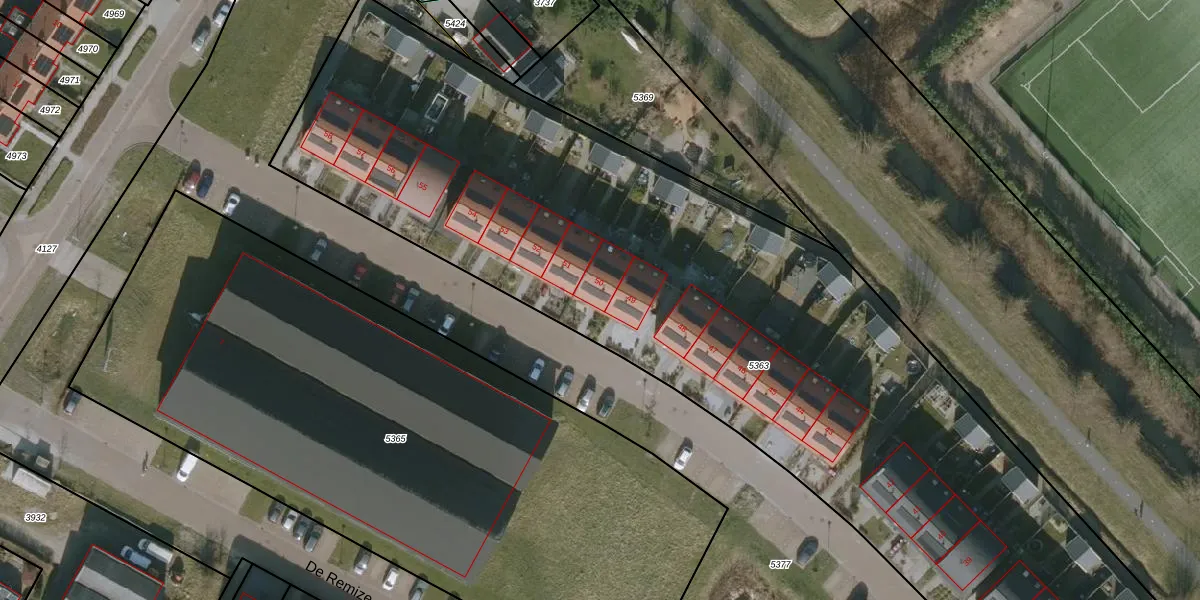 Het perceel waarop De Remize 50 staat heeft een oppervlakte van 5595 m². Dit is een zeer groot perceel. De perceeloppervlakte wordt geregistreerd door het Kadaster. Gedetailleerde informatie over de maten van dit perceel kunt u vinden in het rapport Kadastrale kaart met maatvoering van De Remize 50.