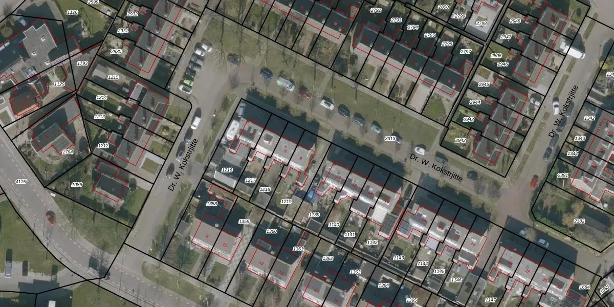 Dr. W. Kokstrjitte 8 is gelegen op kadastraal perceel HUM00D1219. Deze kadastrale aanduiding is uniek en wordt gebruikt door het Kadaster om eigendomsrechten en andere zakelijke rechten vast te leggen. Het perceel maakt onderdeel uit van de kadastrale gemeente Hijum.