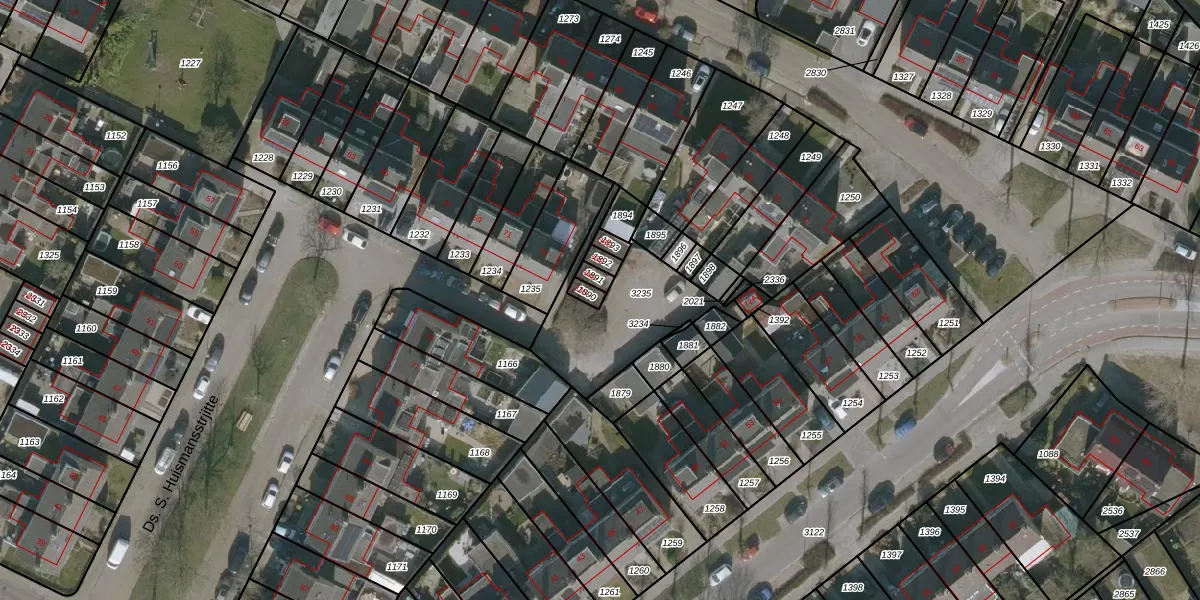 Gebruik de zoekbalk of klik op een perceel voor informatie over de adressen binnen dit perceel.