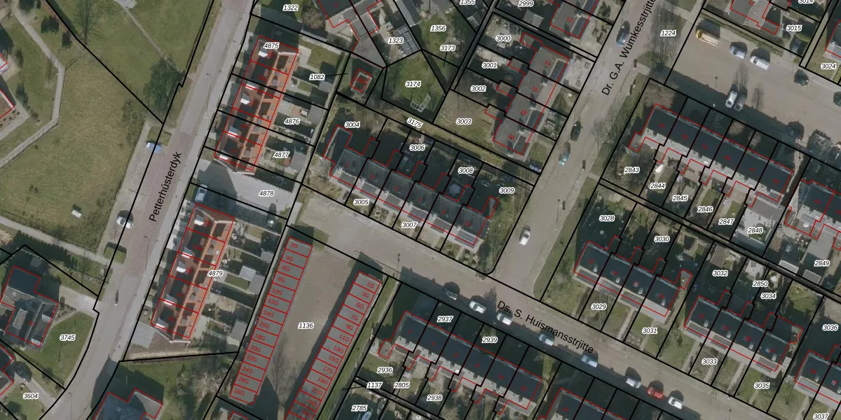 Ds. S. Huismansstrjitte 7 is gelegen op kadastraal perceel HUM00D3007. Deze kadastrale aanduiding is uniek en wordt gebruikt door het Kadaster om eigendomsrechten en andere zakelijke rechten vast te leggen. Het perceel maakt onderdeel uit van de kadastrale gemeente Hijum.