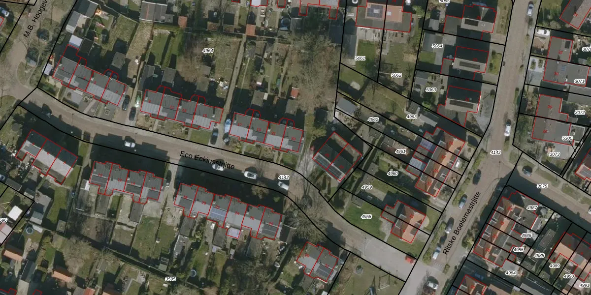 Eco Eckiusstrjitte 23 is gelegen op kadastraal perceel HUM00B4964. Deze kadastrale aanduiding is uniek en wordt gebruikt door het Kadaster om eigendomsrechten en andere zakelijke rechten vast te leggen. Het perceel maakt onderdeel uit van de kadastrale gemeente Hijum.