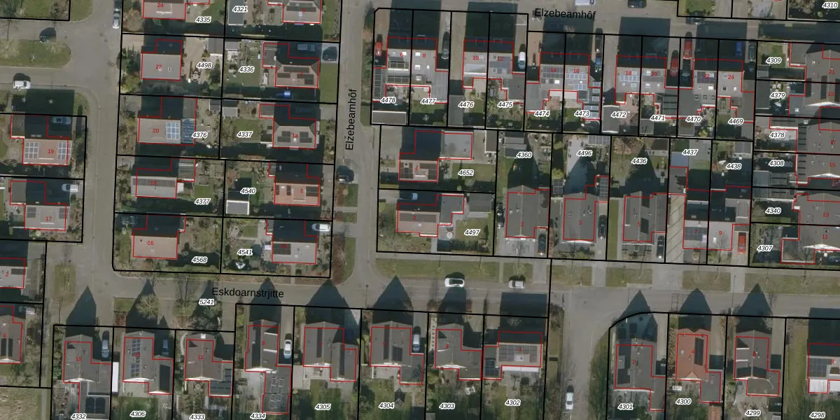 Het perceel waarop Elzebeamhôf 2 staat heeft een oppervlakte van 417 m². Dit is een groot perceel. De perceeloppervlakte wordt geregistreerd door het Kadaster. Gedetailleerde informatie over de maten van dit perceel kunt u vinden in het rapport Kadastrale kaart met maatvoering van Elzebeamhôf 2.