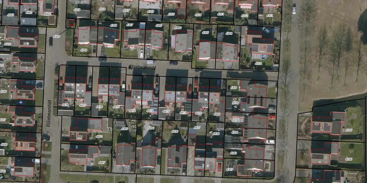 Elzebeamhôf 20 is gelegen op kadastraal perceel HUM00B4471. Deze kadastrale aanduiding is uniek en wordt gebruikt door het Kadaster om eigendomsrechten en andere zakelijke rechten vast te leggen. Het perceel maakt onderdeel uit van de kadastrale gemeente Hijum.