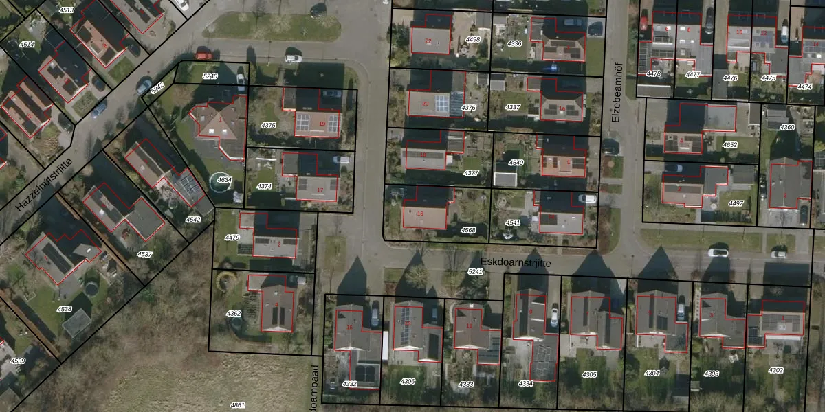 Eskdoarnstrjitte 16 is gelegen op kadastraal perceel HUM00B4568. Deze kadastrale aanduiding is uniek en wordt gebruikt door het Kadaster om eigendomsrechten en andere zakelijke rechten vast te leggen. Het perceel maakt onderdeel uit van de kadastrale gemeente Hijum.