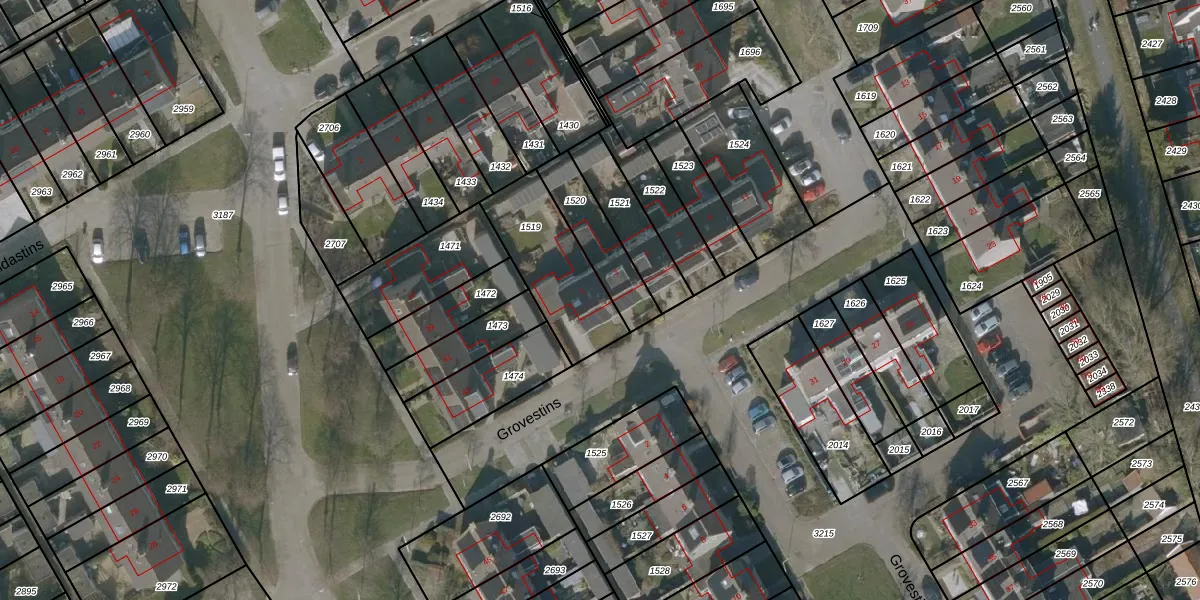 Grovestins 1 is gelegen op kadastraal perceel HUM00D1519. Deze kadastrale aanduiding is uniek en wordt gebruikt door het Kadaster om eigendomsrechten en andere zakelijke rechten vast te leggen. Het perceel maakt onderdeel uit van de kadastrale gemeente Hijum.