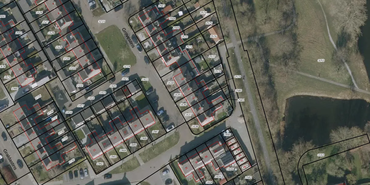 Grovestins 45 is gelegen op kadastraal perceel HUM00D1635. Deze kadastrale aanduiding is uniek en wordt gebruikt door het Kadaster om eigendomsrechten en andere zakelijke rechten vast te leggen. Het perceel maakt onderdeel uit van de kadastrale gemeente Hijum.