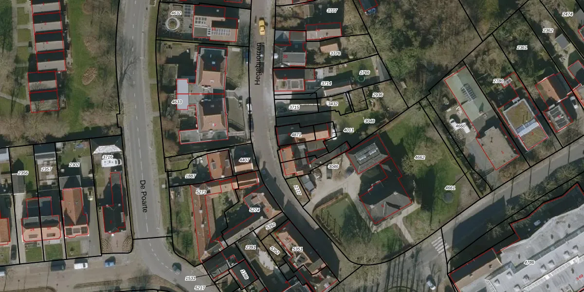 Gebruik de zoekbalk of klik op een perceel voor informatie over de adressen binnen dit perceel.