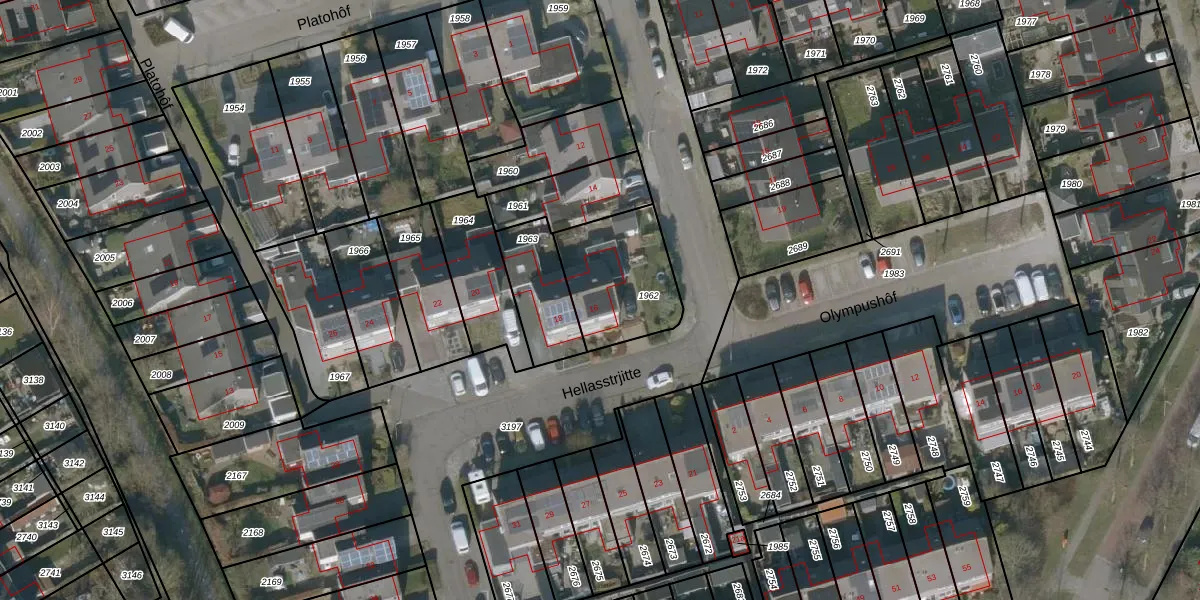 Het perceel waarop Hellasstrjitte 16 staat heeft een oppervlakte van 359 m². Dit is een groot perceel. De perceeloppervlakte wordt geregistreerd door het Kadaster. Gedetailleerde informatie over de maten van dit perceel kunt u vinden in het rapport Kadastrale kaart met maatvoering van Hellasstrjitte 16.