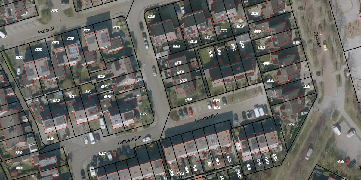 Het perceel waarop Hellasstrjitte 19 staat heeft een oppervlakte van 251 m². Dit is een middelgroot perceel. De perceeloppervlakte wordt geregistreerd door het Kadaster. Gedetailleerde informatie over de maten van dit perceel kunt u vinden in het rapport Kadastrale kaart met maatvoering van Hellasstrjitte 19.