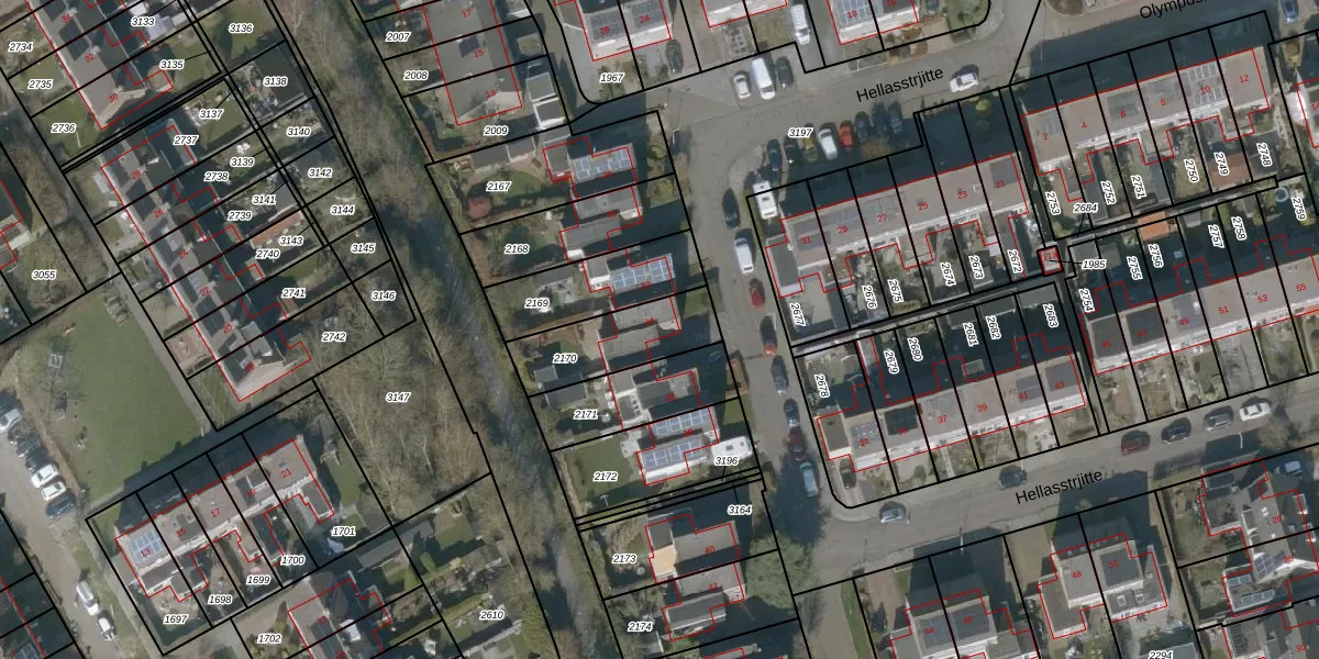 Het perceel waarop Hellasstrjitte 34 staat heeft een oppervlakte van 278 m². Dit is een middelgroot perceel. De perceeloppervlakte wordt geregistreerd door het Kadaster. Gedetailleerde informatie over de maten van dit perceel kunt u vinden in het rapport Kadastrale kaart met maatvoering van Hellasstrjitte 34.