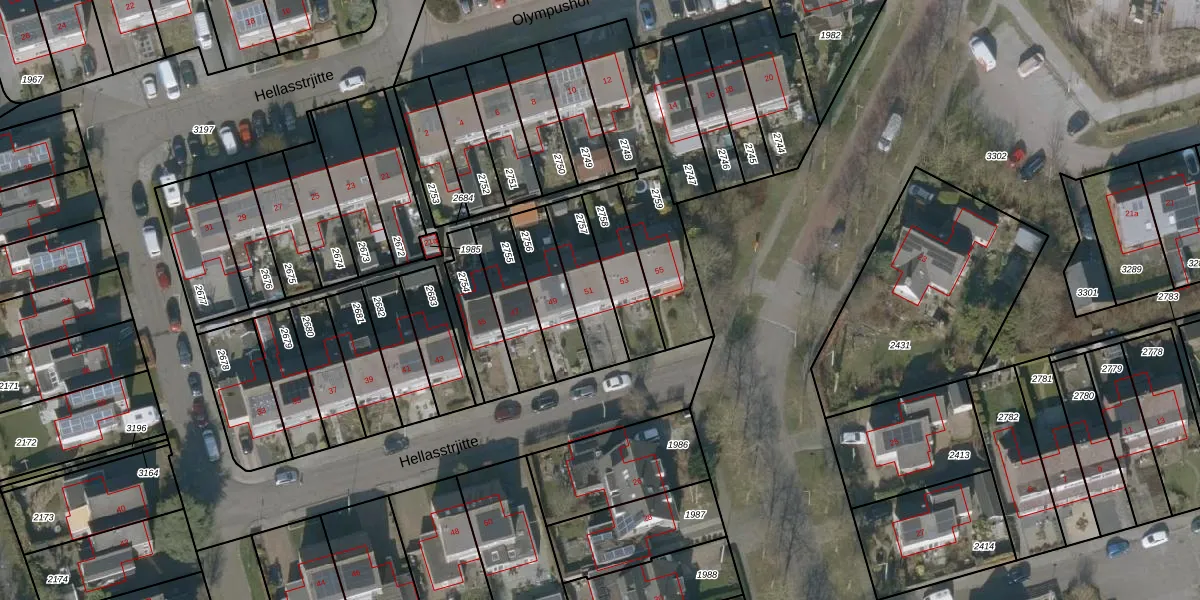 Hellasstrjitte 51 is gelegen op kadastraal perceel HUM00D2757. Deze kadastrale aanduiding is uniek en wordt gebruikt door het Kadaster om eigendomsrechten en andere zakelijke rechten vast te leggen. Het perceel maakt onderdeel uit van de kadastrale gemeente Hijum.
