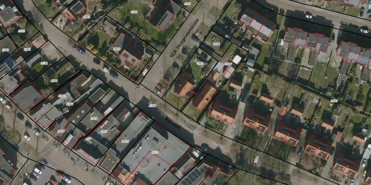 Het perceel waarop Kakewei 5 staat heeft een oppervlakte van 432 m². Dit is een groot perceel. De perceeloppervlakte wordt geregistreerd door het Kadaster. Gedetailleerde informatie over de maten van dit perceel kunt u vinden in het rapport Kadastrale kaart met maatvoering van Kakewei 5.