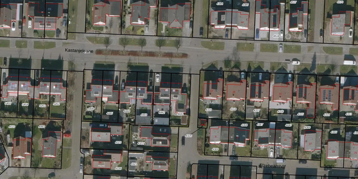 Kastanjeleane 19 is gelegen op kadastraal perceel HUM00B4441. Deze kadastrale aanduiding is uniek en wordt gebruikt door het Kadaster om eigendomsrechten en andere zakelijke rechten vast te leggen. Het perceel maakt onderdeel uit van de kadastrale gemeente Hijum.